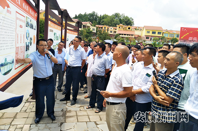 在乐平镇塘约村,讲解员指着处宣传栏对该村的发展历程、发展思路、发展举措、发展方式,以及塘约村采取“党总支+合作社+农户”的发展模式,实现“三权促三变”的成功经验进行了详细介绍。