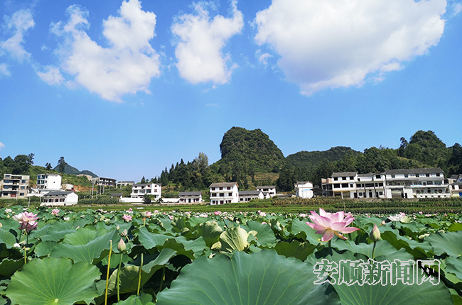 8月20日,笔者在普定县化处镇水井村看到,千亩荷花已盛开,蓝天白云下景色美不胜收,静待游客观赏。近年来,该村按照“茶果上山、蔬菜下地、莲藕进田”的产业结构调整发展思路,通过“村企合一”的组建模式,引进鄂莲系列、泰国莲等多个品种,扩大莲藕种植面积,全村目前发展莲藕种植1000余亩。通过农企销售、农超销售、电商销售、网络销售四大产销对接模式,2018年共销售商品藕、藕种、荷叶茶累计300余万元,带动种植户增收60余万元,带动村民务工增收70余万元,为168户贫困户分红累计达40余万元。(代娜 摄)