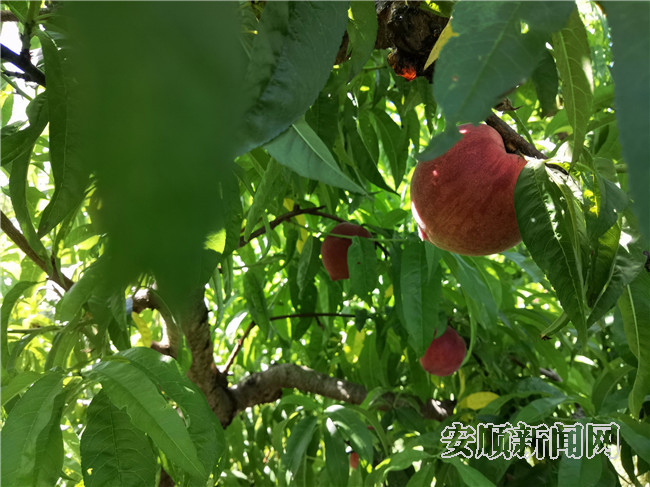 6月,走进位于普定县循环农业示范园区沙湾农业大观园,只见红彤彤的桃子挂满枝头,十分诱人。