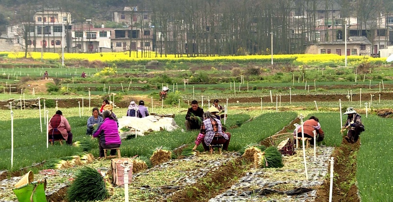 “今年我家的香葱长势不错,现在正是采收的季节,早点把香葱采收结束,争取抢占市场。”褚健说,他是后寨村种植户之一,也是本村村民,他承包了40亩地种香葱,平均一年产四季,香葱主要销往省内外市场和本地市场,供不应求,他家每天还聘请了二三十名工人在香葱地采收香葱,成功实现助民就业增收。