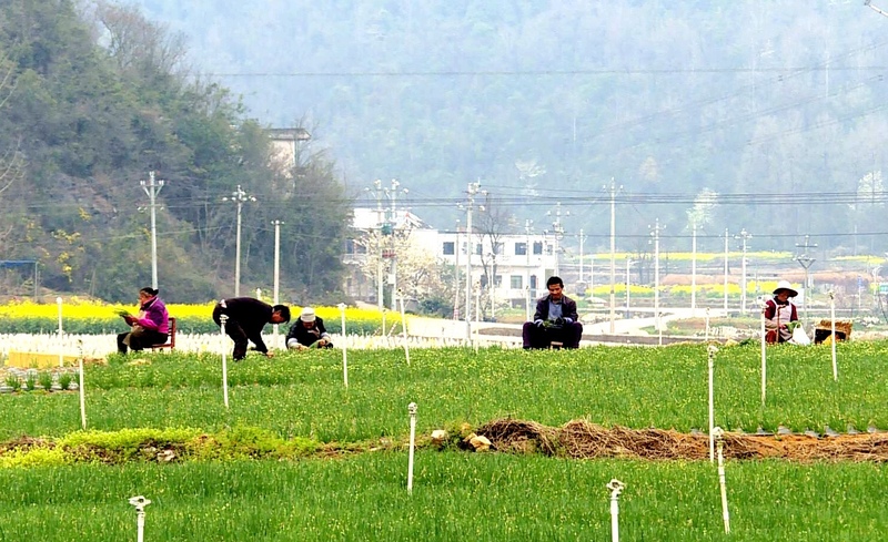 近日,在普定县黄桶街道后寨村,随处可见村民们忙碌的身影。在香葱种植基地,几十名村民正在采收香葱,空气中弥漫着阵阵葱香,阡陌纵横的田野和正在劳作的村民绘制成了一幅“人勤地生金,沃野绘幸福”的乡村美景图。