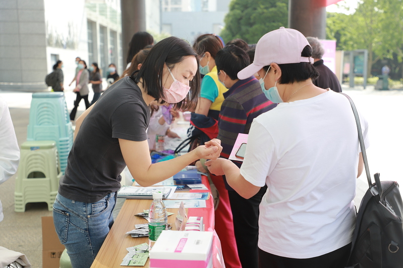 活动现场,工作人员通过悬挂标语和展板、发放宣传手册等方式,向市民宣传儿童使用化妆品的各种知识。皮肤科的医护人员向前来咨询的市民进行义诊,并给出相应的治疗建议。