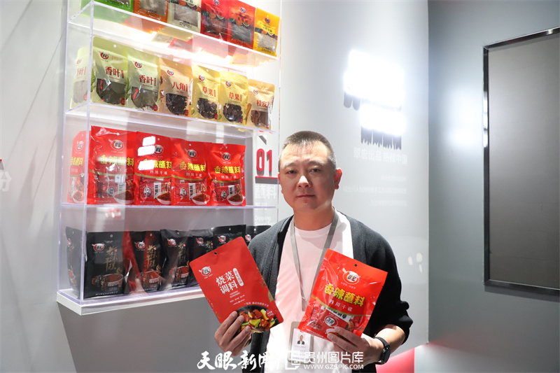 贵州西秀翠宏食品有限公司总经理邱黄杰展示辣椒产品