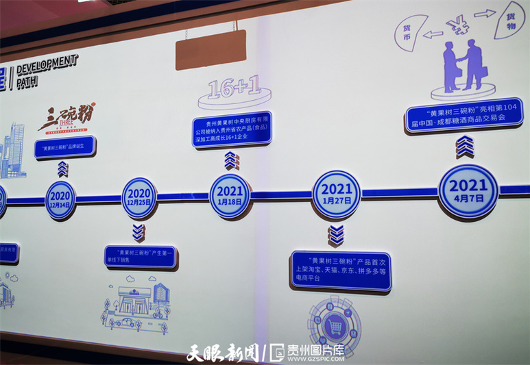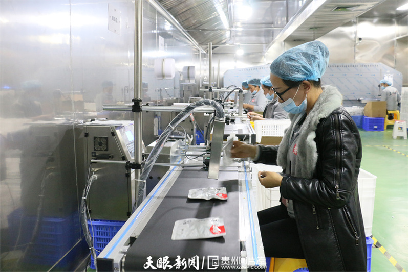 位于安顺经开区川渝工业产业园的黄果树中央厨房,工人们在生产线上对产品进行加工,分拣、装袋、封口、打包,一盒盒畅销海内外的“黄果树三碗粉”新鲜出炉。