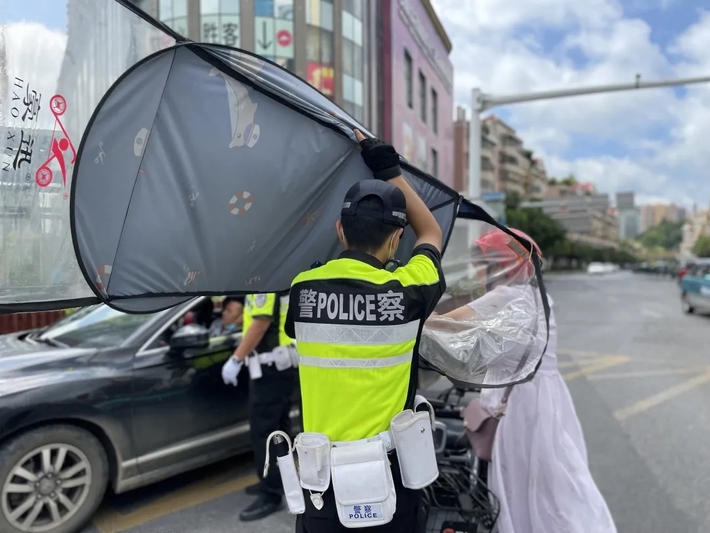 当天安顺交警还在车流、人流量大的市委天桥路口、北门路口、老大十字路口、新大十字、中医院、黔中大厦设置集中整治点,严查严处骑乘摩托车、电动自行车不戴安全头盔、非法安装雨篷、未按规定悬挂车牌等不文明交通违法行为。