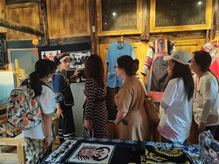 研学团队进入阿歪寨村蜡染坊学习