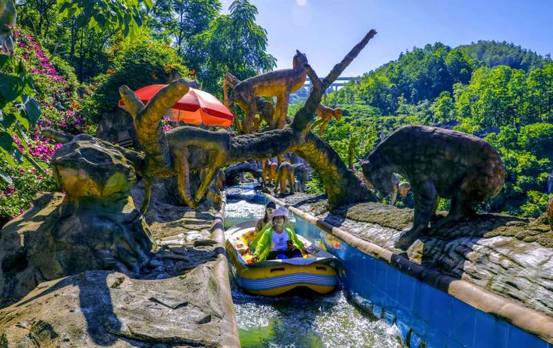 在九仙水世界,冲浪池中游人如织,大家纷纷感受着炎热季节里难得的清凉,突然阵阵浪潮卷来,打得众人“人仰马翻”,欢笑和尖叫声此起彼伏。另一侧的儿童戏水区,孩子们或在嬉戏打闹体验众多水上项目,或在大人的帮助下练习游泳,好不惬意。