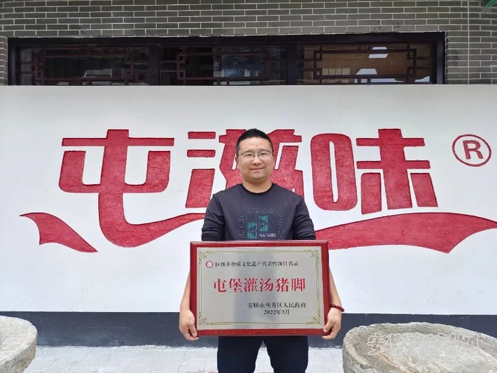 “屯堡文化”历经600余年沧桑变化,屯堡的石头特色建筑是屯堡文化的“静态”遗产,屯堡美食则是屯堡文化的“活态”传承,而灌汤猪脚则是特色之一。2020年,刘伟成功创建餐饮品牌“屯滋味”,以屯堡人的特色美食灌汤猪脚等为主打菜品,让经营多年的餐饮行业重新焕发生机。