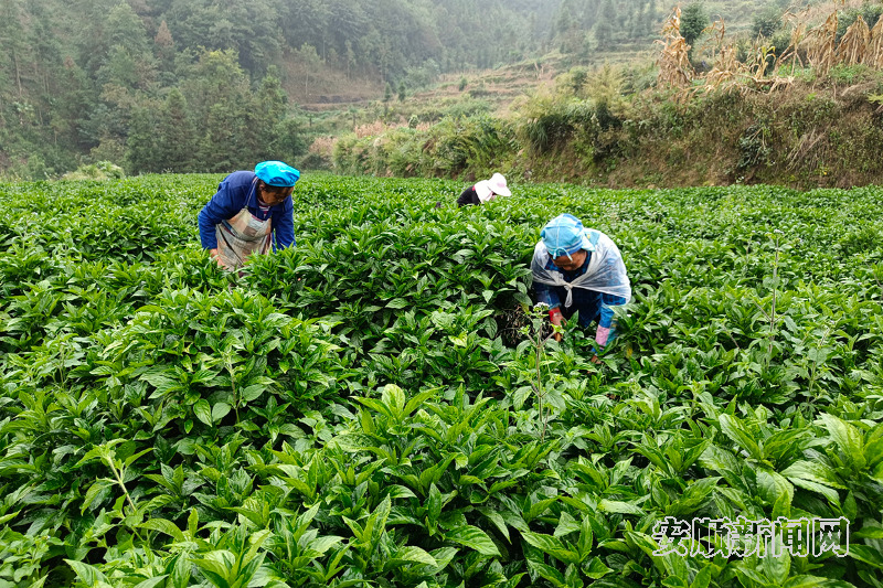 时下,正是猴场镇的蓝靛收割季,在尅座村蓝靛示范种植基地里,村民们忙着收割、捆绑、搬运、剪枝叶,一片忙碌的丰收景象。