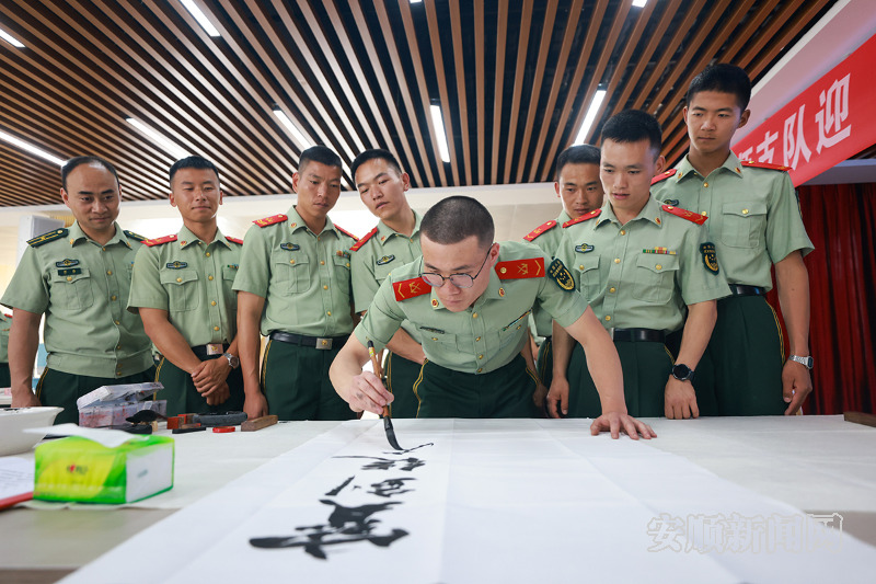 近日,武警安顺支队邀请中国美术家协会会员、中国书法家协会会员等数名艺术家,来队开展“书画进军营”活动,帮助官兵厚实内涵底蕴,提振文化自信。