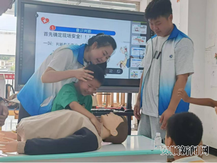 为进一步普及应急救护知识和技能,护航留守儿童健康成长,近日,安顺职业技术学院“安职急救先锋志愿服务队”到我市西秀区新安街道彩虹社区开展为期三天的暑期大学生“三下乡”社会实践活动。