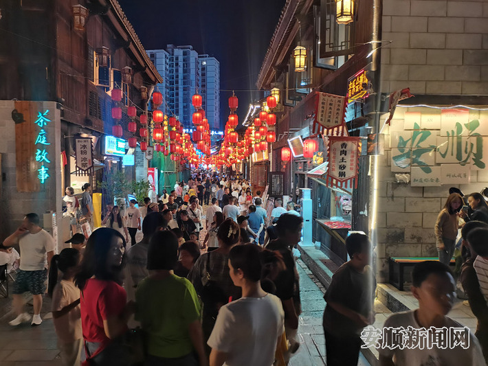 民以食为天,游以食为大。安顺深挖地方美食文化,积极推出《安顺美食地图》,举办安顺美食大赛,评选出50家“安顺老字号”餐饮小吃店,推动安顺特色美食出圈出彩。并依托虹山湖、娄湖、多彩万象旅游城等打造城市网红夜市,升级推出旧州古镇、好吃街、安顺古城历史文化街区、民主路+儒林路美食街区、新天地美食街区等10条文旅综合性消费街区,让游客品一品屯堡军帐宴,尝一尝民族汤锅味,淘一淘小吃“过街调”,在烤小肠中感受人间烟火。
