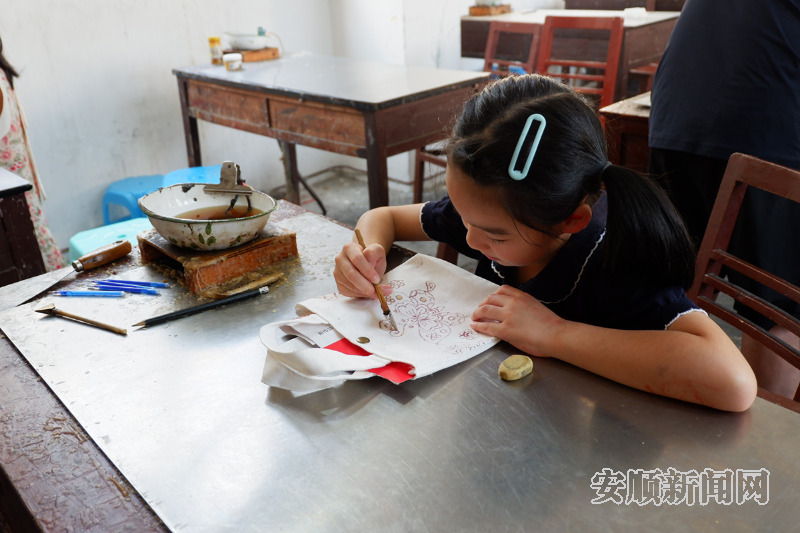 “我一直对蜡染非常感兴趣,特意自驾导航到这里体验少数民族的手工艺。孩子们不仅锻炼了动手能力,做一幅自己喜欢的蜡染,又了解到了蜡染的制作方法,这样的体验很有意义。”江苏游客江彦谡开心地说,来到安顺,印象最深的除了蜡染就是美食。