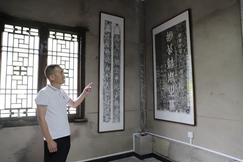 在格凸河景区的印山书画院里,一百余副从摩崖石刻、古宅牌坊、碑碣墓志、城垣、岩画等处拓印而来的拓片作品悬挂于院内大厅。