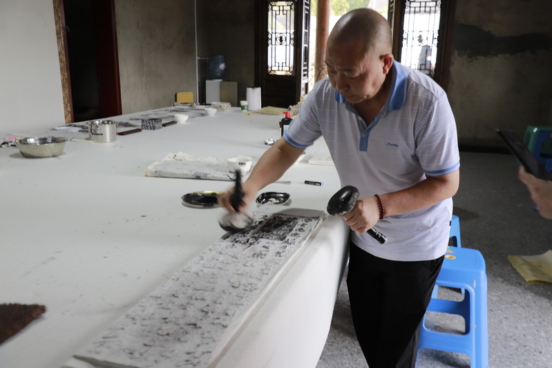 紫云文物古迹拓片协会成员赵玉和正在制作拓片