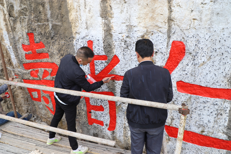 现在,印山广场上的摩崖石刻“仁者寿”三个大字成为紫云自治县内的城市新地标,吸引众多市民游客驻足欣赏。