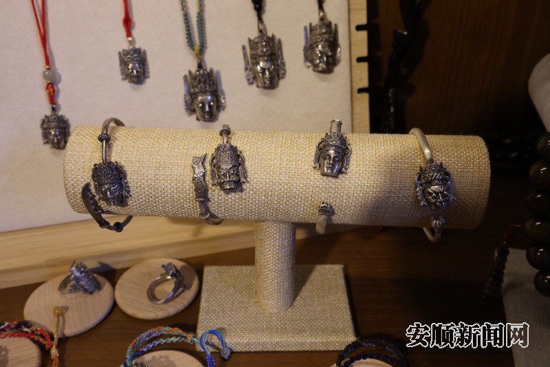 除了制作地戏面具外,为更好地推广传播屯堡文化、地戏文化,鲍波将板雕、立雕结合当地木雕,创作以屯堡文化、地戏文化为主题的Q版抱枕、小面具、银饰品、摆件等屯雕文创产品,让传统技艺与现代创意碰撞出无限火花。同时,将屯堡木雕作为一门研学课程,推广至学校课堂,吸引学生体验地戏面具的雕刻与彩绘,让更多学生了解屯堡文化、喜欢屯堡文化。