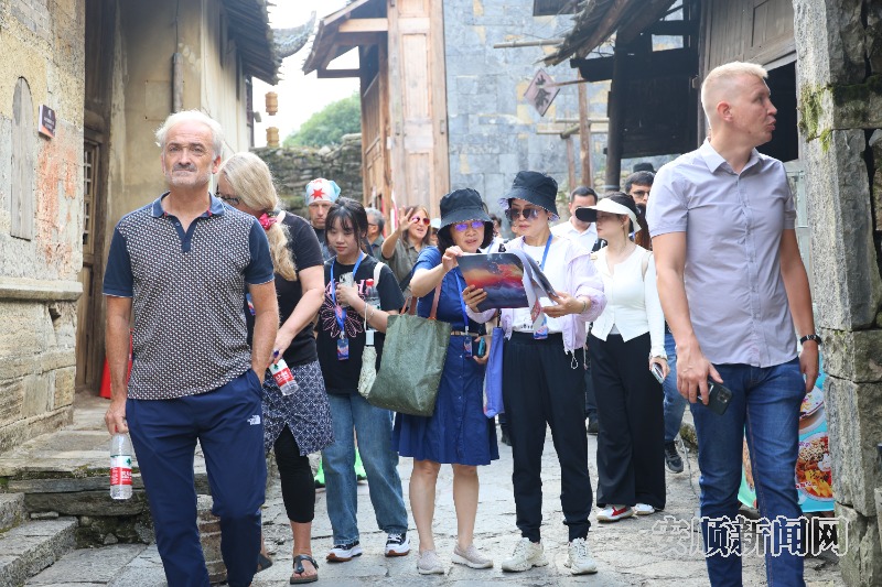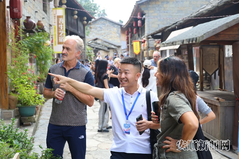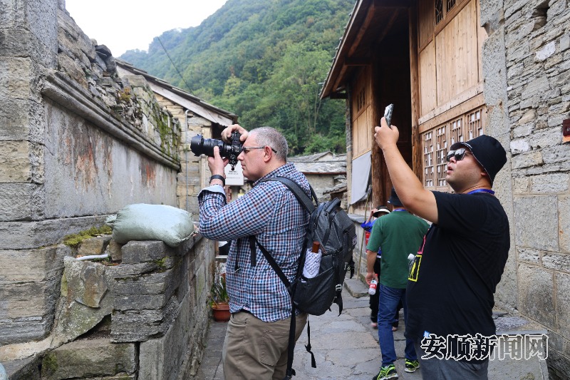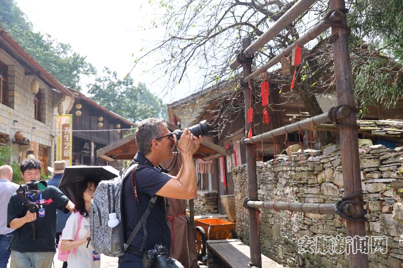 9月11日,由中国日报社、贵州省委宣传部组织开展的2024“视觉@中国”贵州行专项宣传推广活动走进安顺,70多名国内外视觉领域专家学者云集云山屯古建筑群,开展采风活动。
