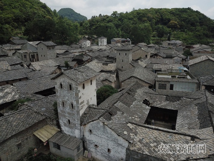 坐落云鹫山峡谷中的云山屯,山势险峻陡峭,古树参天,浓荫密布,一条盘山古道蜿蜒而上,它是一个相对封闭的屯堡,数公里的石墙蜿蜒起伏,山门处高耸着一座箭楼,险要处共有14个碉楼。一条东西向的主街纵贯全村,弯曲的小巷把若干院落串联起来,民居、店铺、庙宇、戏楼、碉楼比比皆是。本寨,是始建于明代的汉族村落群云峰八寨之一,也是八寨的大本营,已有600多年历史。寨内共有古村落房屋64栋,是保存特别完整的屯堡古建筑群,集屯堡服饰、饮食、花灯、传统习俗、田园风光为一体的屯堡村寨风情一览无余。