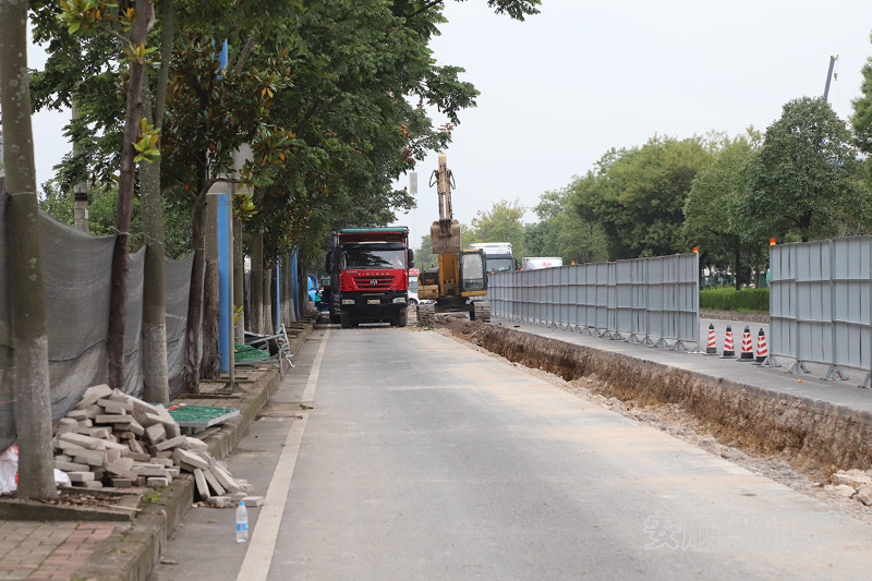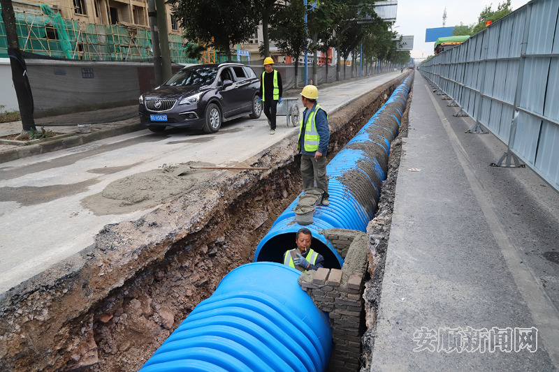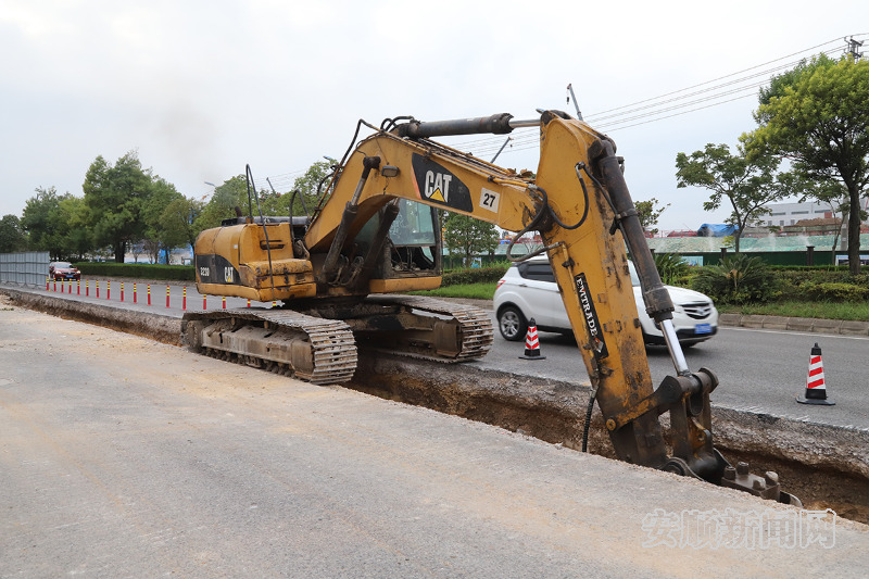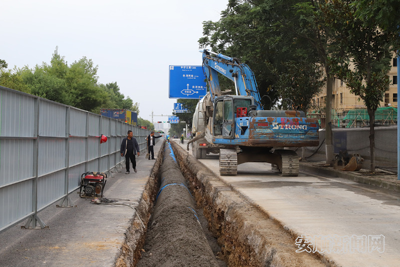 施工现场,记者看到,前面的挖机忙着开挖路面,后面的挖机将挖松的土石方装进车,在开挖好的路段,雨污分流管道已经埋入沟槽,工人们忙着回填混凝土,现场一派繁忙的施工景象。现场施工负责人李渊告诉记者,目前项目已完成总工程量的50%,力争在月底完成建设。