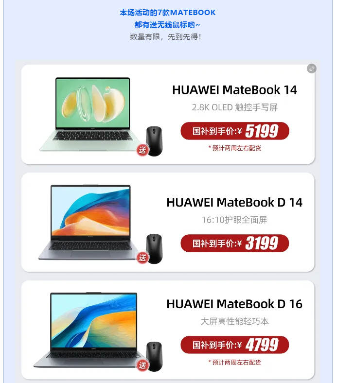 以旧换新丨华为品牌专场,笔记本电脑、智慧屏暖冬促销中,有买有送~
