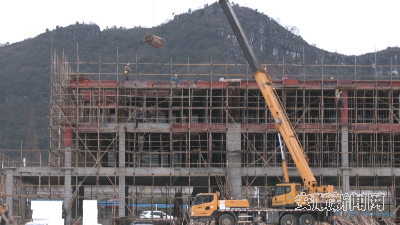 近日,在位于安顺经开区幺铺镇石塔村的贵州宏屠牛羊交易中心项目的施工现场一片繁忙,运输车辆来回穿梭,100多名工人正在有序抢抓工期进行施工。