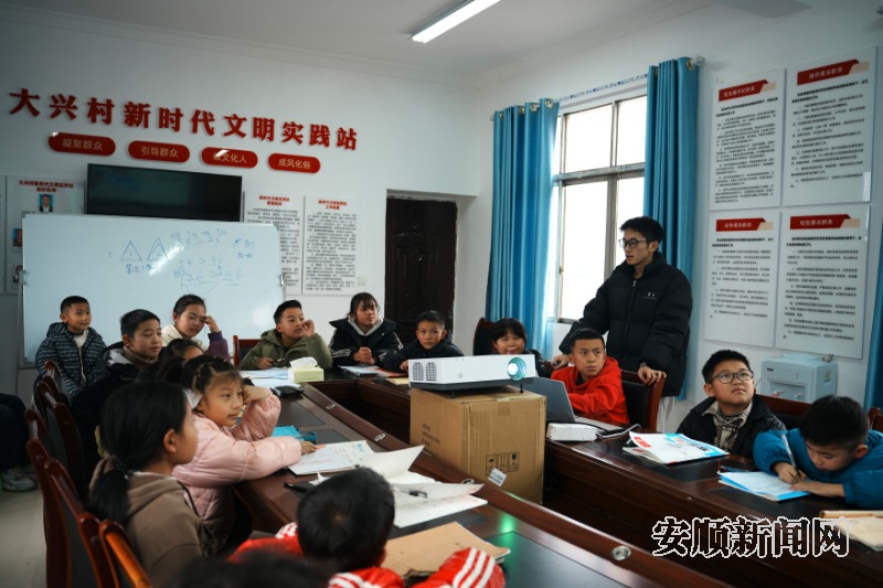 1月22日,在普定县黄桶街道大兴村的村级办公室里,一群中小学生正围坐在一起,全神贯注地跟随老师的讲解,学习数学思维训练,教室内暖意融融, 热闹非凡。
