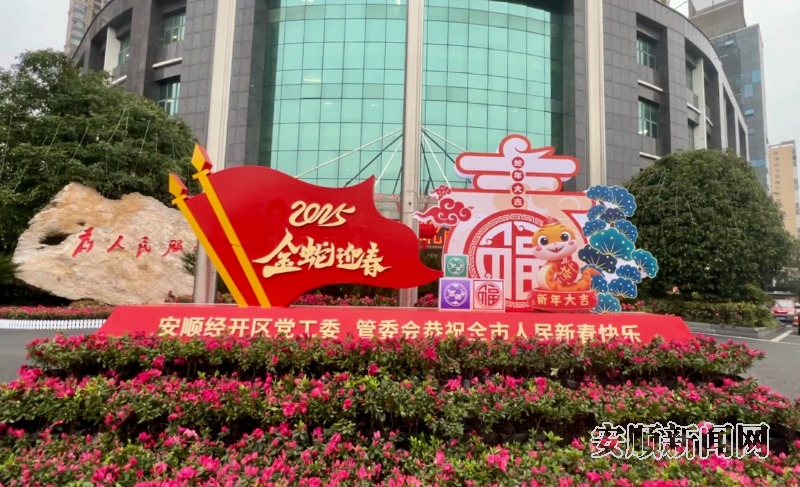 2025年春节到来之季,安顺经开区在城区主要街道打造了一系列鲜花景观小品,为市民营造了喜庆、温馨的节日氛围。