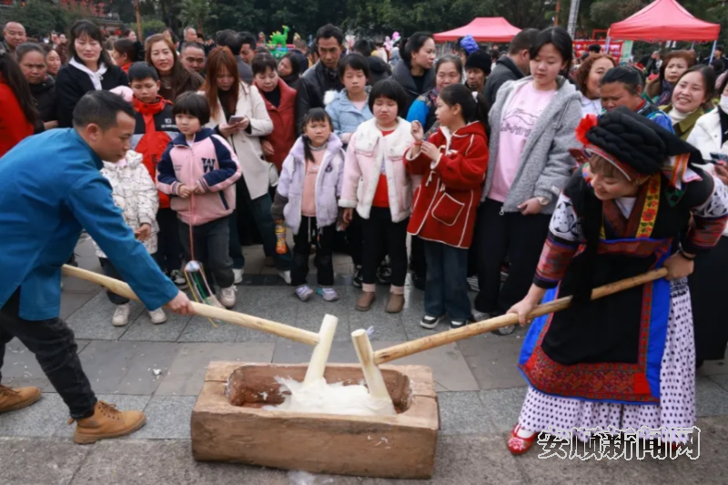 打糍粑环节人气爆棚,市民和游客围得水泄不通,大家纷纷跃跃欲试,亲自上手体验打糍粑的乐趣。欢声笑语中,当地非遗传统文化不仅给游客们留下了难忘回忆,也让大家更深入地了解了地方特色。