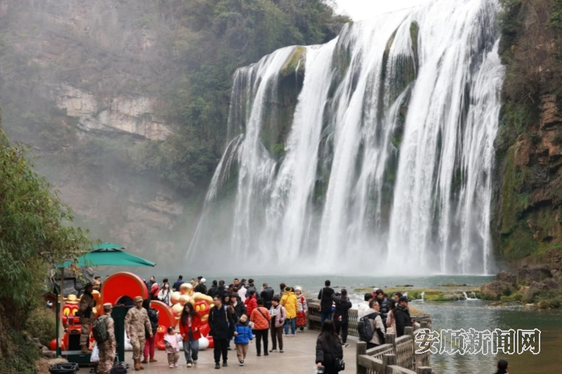 农历大年初二,黄果树旅游区迎来旅游热潮,景区内处处洋溢着欢乐祥和的节日氛围,各地的游客纷至沓来,共同享受着难得的团聚时光。