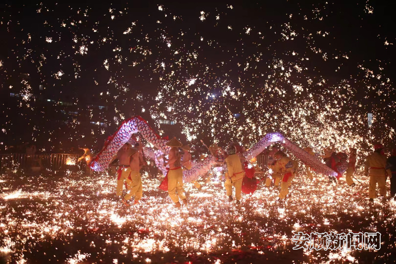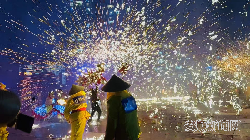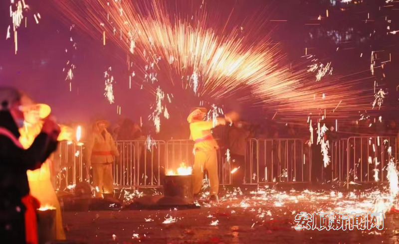 2月12日元宵节,“四季普定·文城之春”铁水冲龙主题文化周迎来了最后的“重头戏”——非遗铁水冲龙展演,参与展演的龙队齐聚普定县体育场,呈现了一场火树银花、铁火流星的壮丽美景。