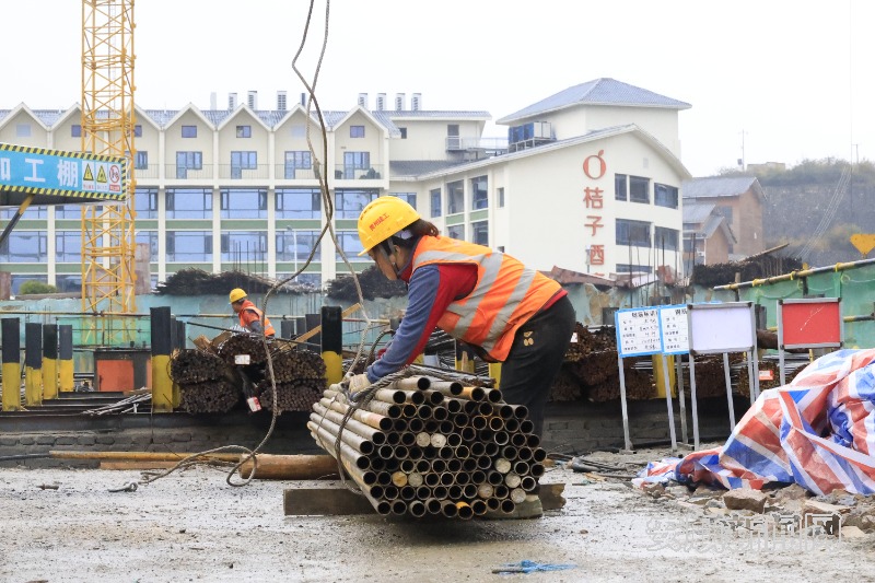 日前,记者走进位于黄果树旅游区的花间堂度假酒店项目施工现场,几十名工人正在工地上忙碌,扎钢筋、搭支架,现场机器作业声轰鸣,工程车来回穿梭,一派热火朝天的景象。