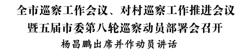 杨昌鹏指出,五届市委以来,市委坚持把巡察作为推进全面从严治党、履行全面监督职责的重要抓手,持续推动巡察工作向深拓展、向专发力、向下延伸,政治监督更加聚焦,全覆盖任务扎实推进,利剑作用不断彰显,对村巡察持续深化,为全市高质量发展提供了坚强保障。