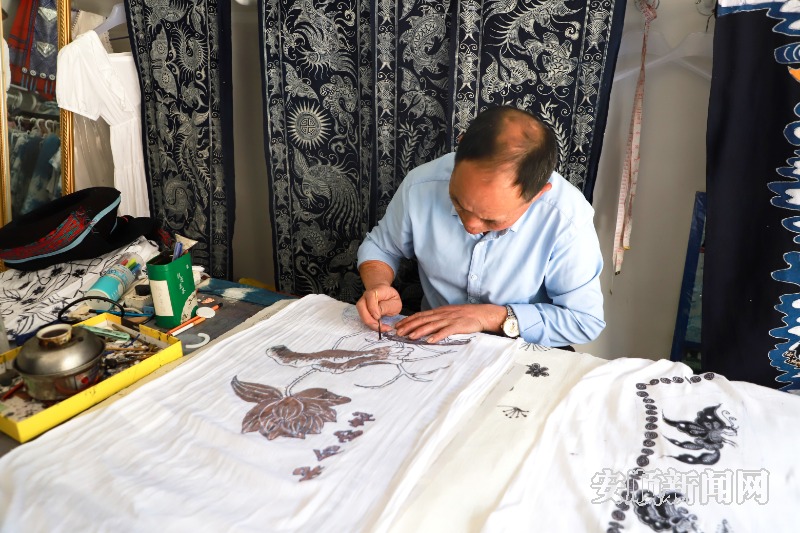 “这些蜡染的服饰都是你自己手工制作的吗?”走进韦启珍蜡染工艺制作坊里,来自广东的游客吴女士与朋友正在挑选蜡染服饰,最终被一条蓝白相间的蜡染裙子吸引,决定将其作为此次旅行的纪念。