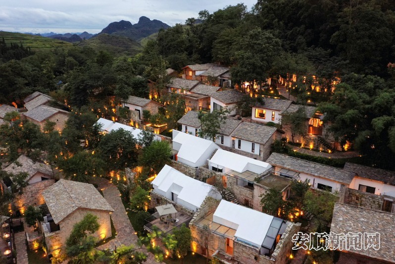 驱车向前,石头寨村普叉组的匠庐・村晓民宿如同一处遗世独立的桃源,一栋栋由石头堆砌而成的房屋,与周围郁郁葱葱的山林和谐共生,仿佛置身一座石头王国。