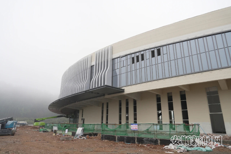 “当前项目正全面推进,室外正在进行绿化带土方开挖、草皮铺设及绿植种植等工作,主体部分正同步开展外墙涂料施工、玻璃安装及排水沟施工作业。预计8月全部完工。”黄果树服务中心项目生产主管范瑞凯向记者介绍道。