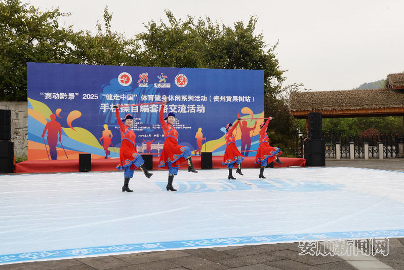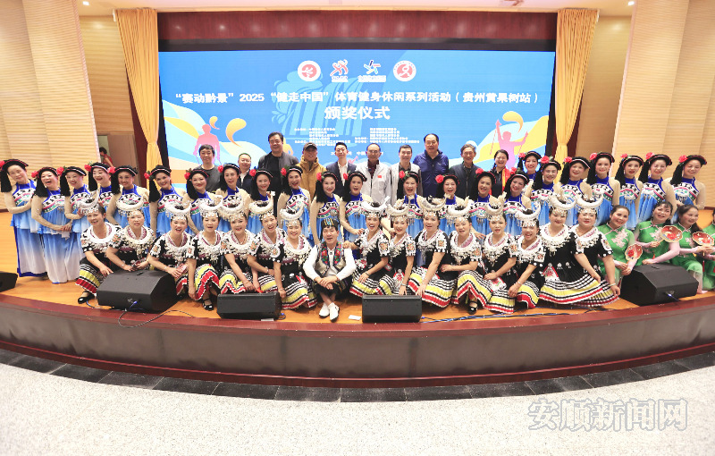 4月10日,“赛动黔景”2025“健走中国”体育健身休闲系列活动贵州黄果树站圆满落幕,并进行了“赛动黔景”2025“健走中国”体育健身休闲系列活动贵州黄果树站颁奖仪式,为手杖操自编套路交流活动获奖队伍颁奖。