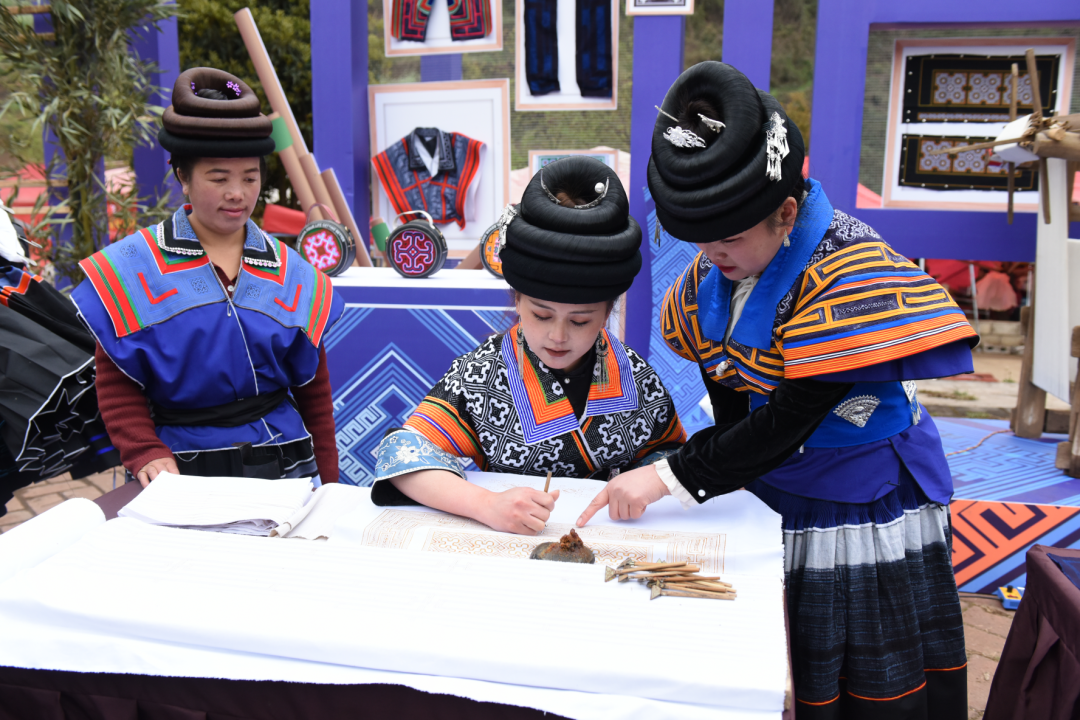 非物质文化遗产展示区早被围得水泄不通。现场,传承人李桂花手持铜刀在蜂蜡上游走,眨眼间勾出一朵活灵活现的杜鹃花。“闺女手要稳,蜡刀斜着走线才不断。”她手把手教浙江游客小林制作时,说起自家作坊的新变化:“去年乡里帮我们开了网店,上海客人订了五十条蜡染围巾说要办艺术展咧!”