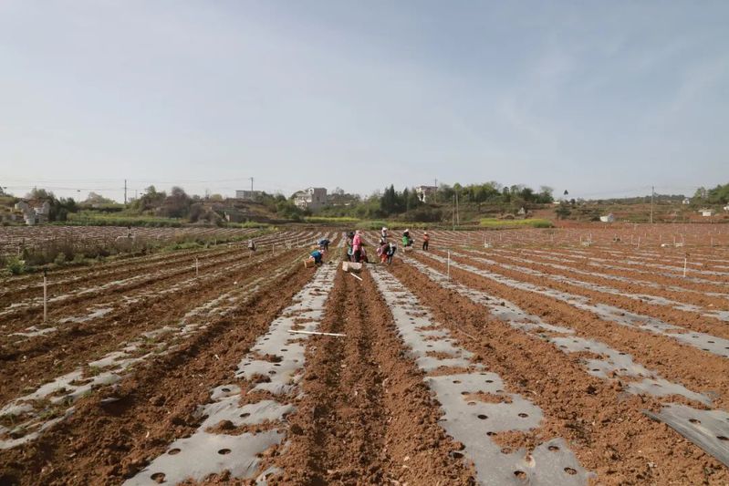 在毕纳英身后,贵州宝仁生农业开发有限责任公司负责人刘华正为工人们讲解种植技术要点。抬头望去,500亩平整连片标准化农田上,韭黄栽植作业有序推进——这是刘华继鼓楼街道向阳村750亩韭黄基地后,在平坝区的又一次产业扩展。