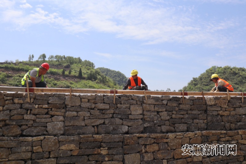 4月16日,记者来到平坝区乐平河塘约村至麦翁村段河道治理工程项目建设现场,只见施工人员正井然有序地进行格宾石笼挡墙作业及混凝土浇筑压顶等工作。