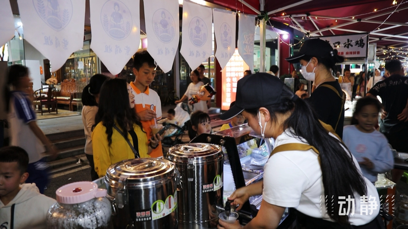 夜晚,中国茶城迎来全天客流高峰。这几天,新开设的茶啤酒美食一条街热闹非凡。在集合茶饮、音乐、市集等业态后,这条街成为市民和游客夜间消费新地标。游客曾女士带着朋友在街上逛了一圈,“太有氛围了,小吃很多,特产也很多,音乐会也很好听。”