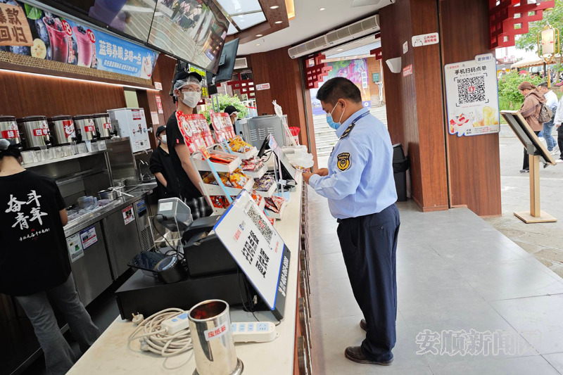 在新城广场,黄果树旅游区市场监督管理局工作人员正在逐户检查沿街商铺。“节前检查聚焦旅游市场秩序、食品药品安全以及特种设备等重点领域。”黄果树旅游区市场监督管理局副局长段冲冲介绍,该局将工作人员分成4组,对区域内经营场所进行全覆盖式检查,坚决杜绝缺斤短两、阴阳菜单等不良现象,规范经营行为。