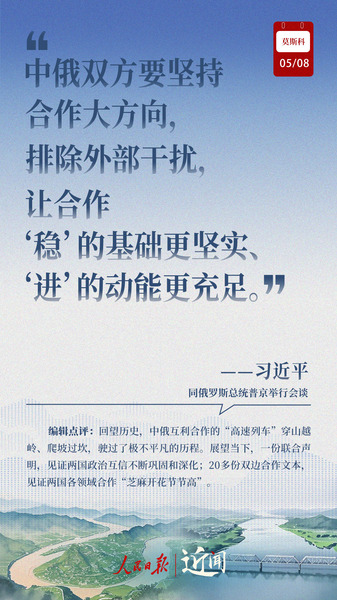 做百炼成钢的真朋友、彼此成就的好伙伴、国际秩序的捍卫者、全球治理的引领者,在纪念中国人民抗日战争、苏联伟大卫国战争胜利和联合国成立80周年之际,中俄新时代全面战略协作伙伴关系进一步深化。