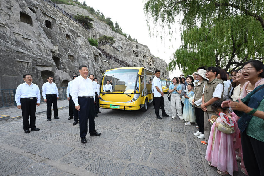 2025年5月19日下午,习近平总书记在河南省洛阳市考察龙门石窟,了解当地加强历史文化遗产保护利用、推动文旅产业高质量发展等情况。