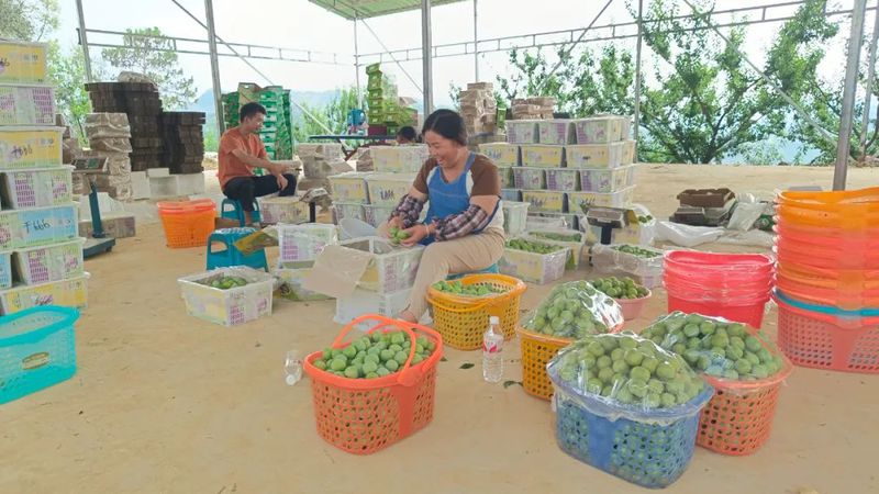 火花镇兴合村同样是蜂糖李种植大村,全村665户中有638户种植蜂糖李。“全村种植面积达1.5万亩,其中1.2万亩已进入丰产期。按平均每亩采摘1500斤、每斤20元的保守价格计算,预计今年全村蜂糖李产值可达3.6亿元。”兴合村村支书杨仕明说道。