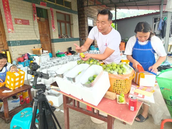 村民通过网络直播线上销售冰脆李