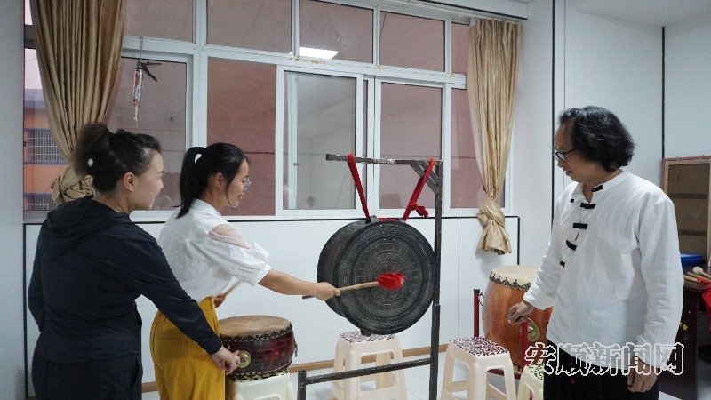 隔壁的课堂上,学员罗五一正认真地和老师廖子美学习铜鼓十二调,她高兴地说:“这样的文化公益课太有意义了,有好的学习场地,有专业的老师,还是免费的。去年我就来参加过,今年看到又开课了,我就赶紧报名了。”