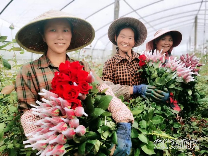 走进种植大棚,当地村民正熟练而有序地进行采摘、分拣、装车等工作。“我在这个玫瑰种植基地务工已经有6年了,采花、施肥、剪枝,一年下来都有活干,不仅学到了鲜花种植的技术,收入也相当可观,还能兼顾家中的老人和孩子。”青山村农户杨持慧一边忙碌着,一边笑着说。