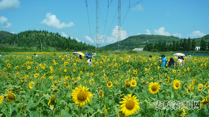 7月27日,在位于安顺经开区宋旗镇的600亩向日葵花海基地,金浪翻涌,花香扑鼻。游客徜徉花海,或驻足拍照,定格美景;或嬉笑玩耍,享受着难得的休闲时光。