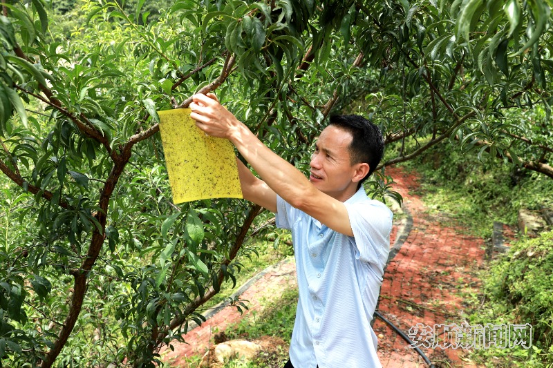 兴合村党支部书记杨仕明在蜂糖李果园管护果树